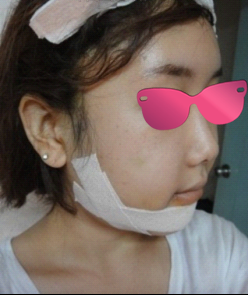 做了下颚角,颧骨。下颚角是口腔内切口,颧骨是头皮切口,(耳朵上方看不见切口)!额头是硅胶填充的。