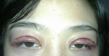 第二天上午我先去化验,抽了三管血呢,现在还心疼。。。。中午先给我化了线,说我的眼睛比较大,画了8MM,中午一点左右手术开始,by the way,皮肤真的很好哦。话说那麻药打的真是疼啊。。。眼泪都快出来了,不过为了美,偶忍了。。。打完麻药,眼皮上基本上就没感觉了,只感觉上面在剪啊拉啊什么的。给我做的很细心,差不多一个小时才完,旁边的助理一个劲得说做的实在是太细了,他看别人手术都没这么细过,我心里那个美滋滋啊~~~~~多谢了。整个手术过程挺轻松的,手术结束一个小时后开始有点疼痛感了,护士给我准备了冰敷,不过我左边眼睛有点渗血呢。。。。