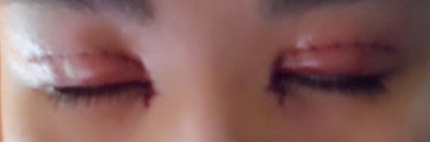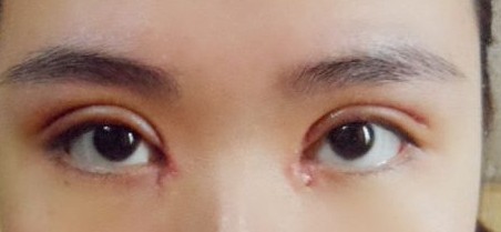 今天是拆线第二天~总觉得我的恢复能力有点迅速,左眼已经不怎么肿了 右眼还有一点 但现实里看两个都不肿了!害怕恢复太快增生来的也快而且好窄啊