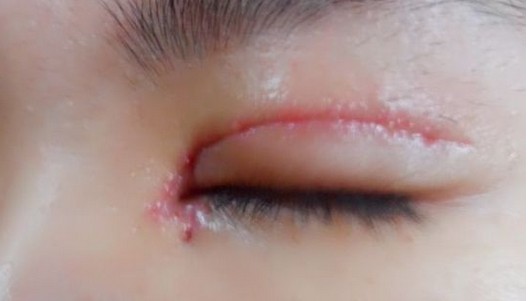 今天去拆了线好疼啊!左边眼角拆线的时候被剪破了一点~右边还说有一个没拆出来等线头顶出来了让我自己揪出来 郁闷死我了各种怕看不到线头
